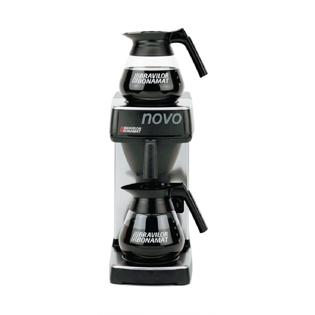 Cafetera de llenado manual muy fácil de usar, con bases de calentamiento automáticas. Mantenimiento sencillo; recipiente para filtros en plástico. Una jarra de vidrio apta para lavavajillas incluida.