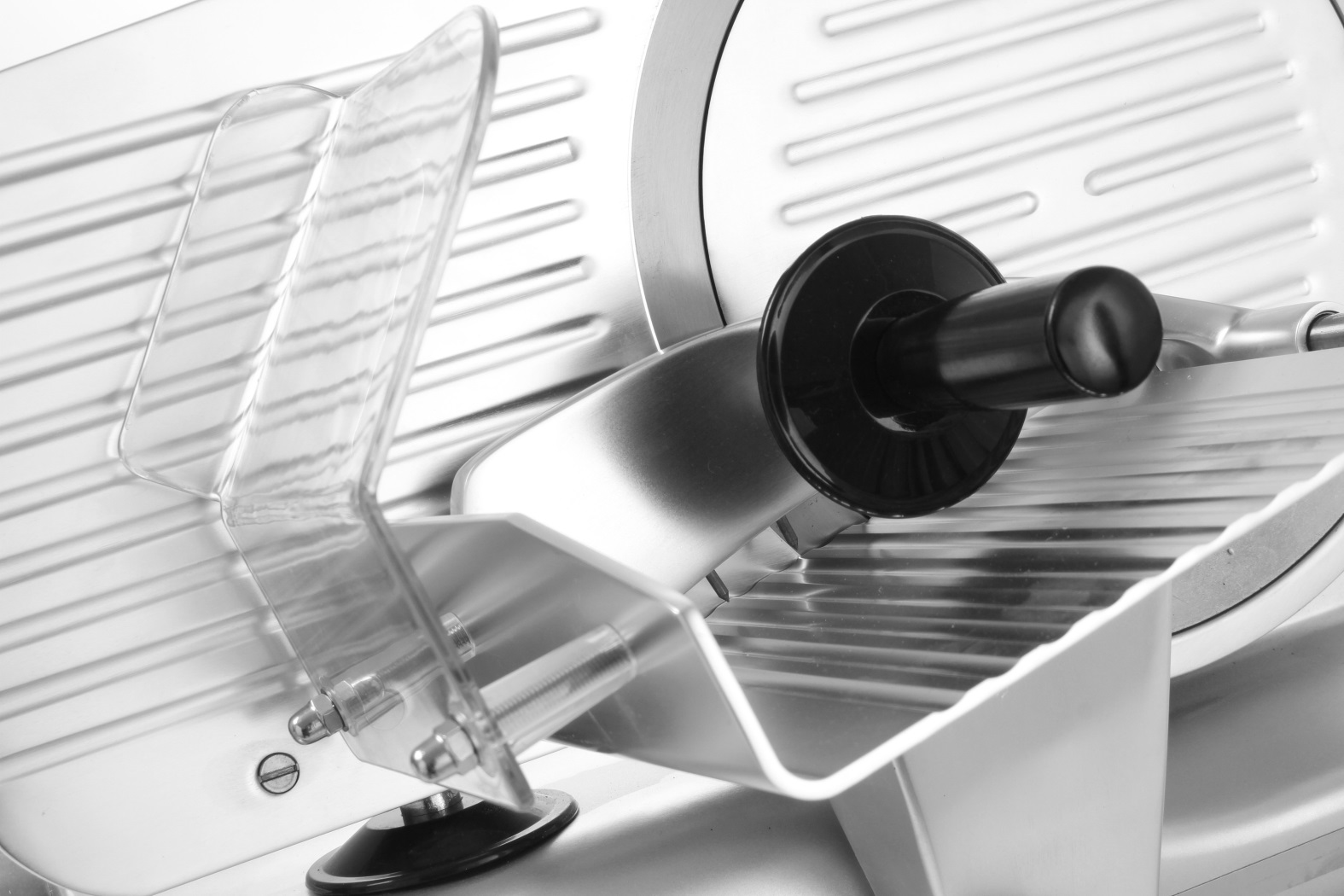 Slede de metal con cerradura de transporte y escudo de seguridad de plexiglás.