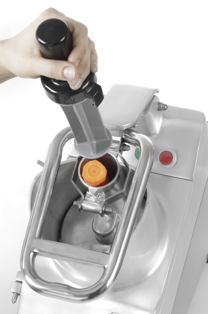 Destinado a cortar grandes cantidades de verduras. Gran abertura con palanca para entrar en grandes piezas de verduras, hasta 165 mm. Pequeña abertura para entrar en verduras largas, por ejemplo zanahorias, pepinos a 55 mm. Carcasa de cámara de corte de aluminio fundido, parte inferior de la carcasa de acero inoxidable. Práctica palanca de presión. Motor potente de 750W a 1 hp refrigerado por aire. Botones de baja tensión: STOP, START (24 V). 2 sistemas de seguridad: cortador de verduras se apaga después de levantar el mango de la palanca y cuando se levanta la tapa de la cámara de corte. El cortador de verduras se inicia automáticamente cuando se empuja la palanca. Cuchillos fáciles y rápidos de reemplazar. Viene con 5 cuchillas: discos de 2 mm (disco con 3 cuchillos). Discos de 4 mm (disco con 3 cuchillas). Rejilla de 3 mm. Rejilla de 5 mm. Rejilla de 7 mm. Disco de eyección. 4 pies antideslizantes de goma. Velocidad: 300 rpm. Peso: 25 kg. Plástico ABS. Aluminio. Acero inoxidable.