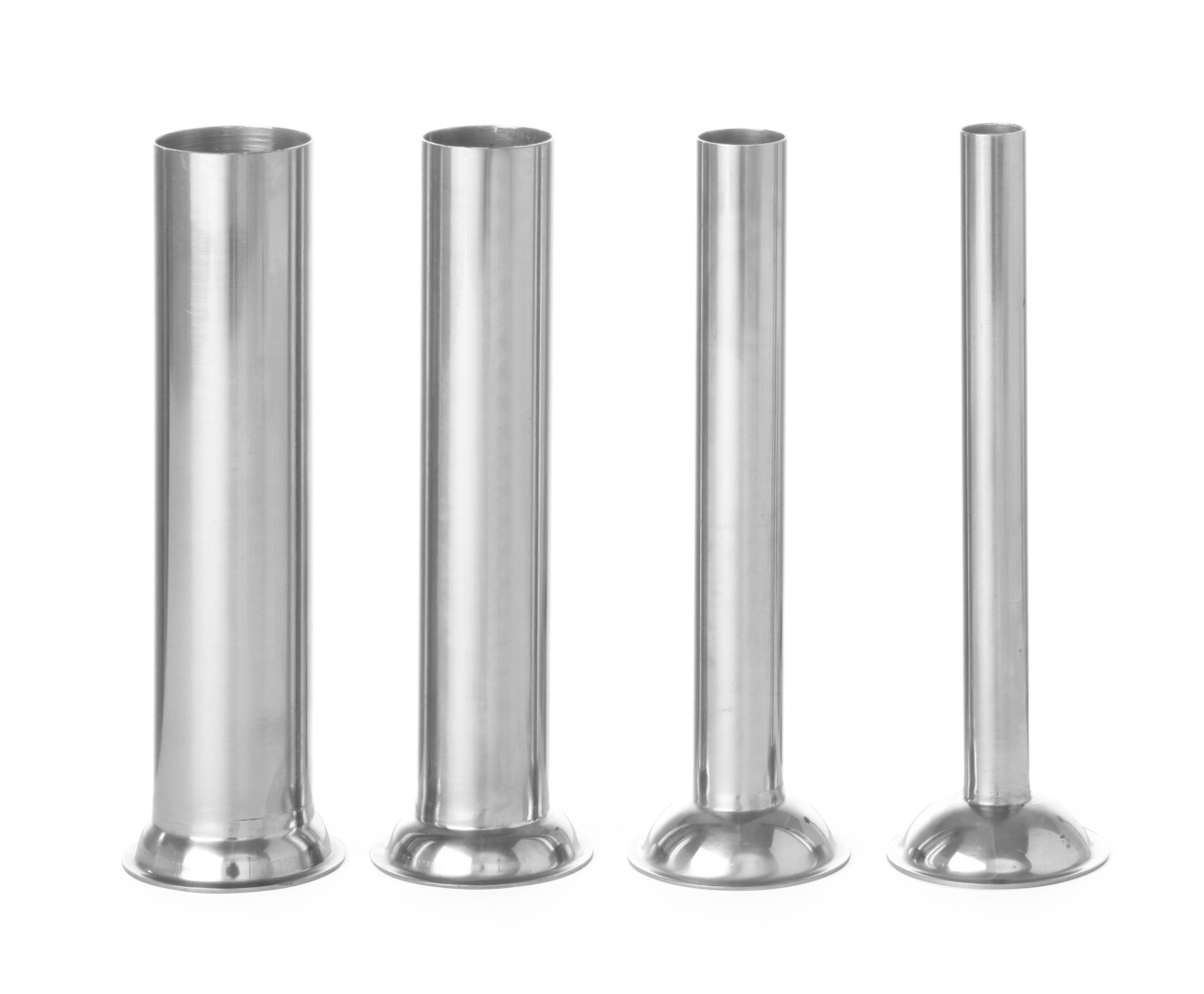 Incluye conjunto de 4 embudos de acero inoxidable,