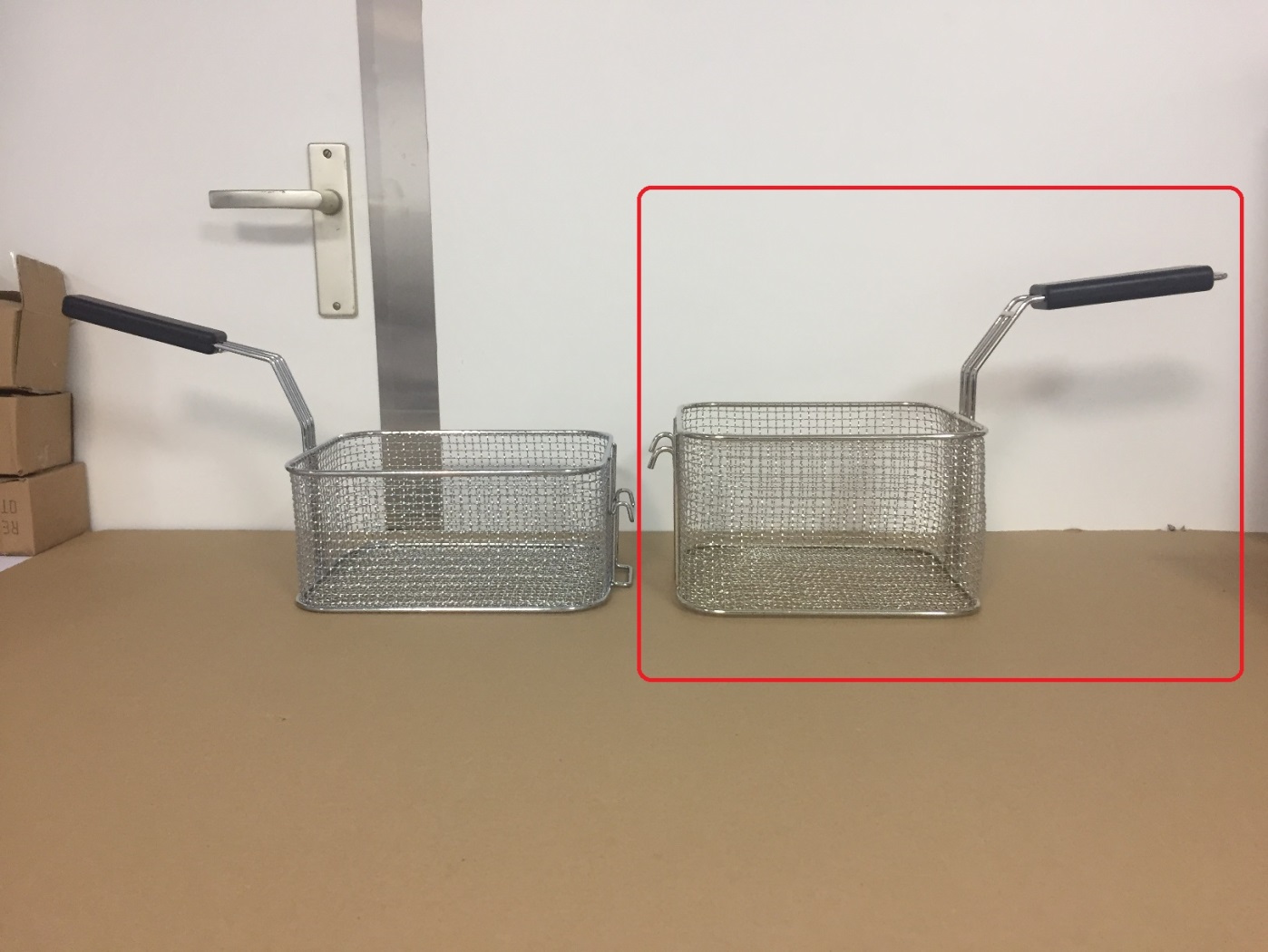 La cesta de la derecha en la foto en comparación con las freidoras Hendi Mastercook del lote no. 401248 (año de construcción de aproximadamente 2015)