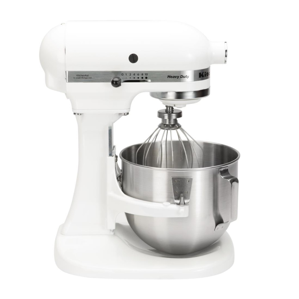 Diseñada especificamente por su batido intensivo, la mezcladora Kitchenaid K5 blanca, bate todo lo que contenga la cubeta de 4,8Ltr. Fabricada de metal, la mezcladora Kitchenaid está diseñada para durar, incluso su motor utiliza tecnología de conducción para canalizar todo el potencial y transformarlo en un mecanismo de batido. Para una mayor versatilidad, la mezcladora cuenta con un eje para colocar varios accesorios, convirtiéndola así en una mezcladora para pasta, corta verduras y mucho más.