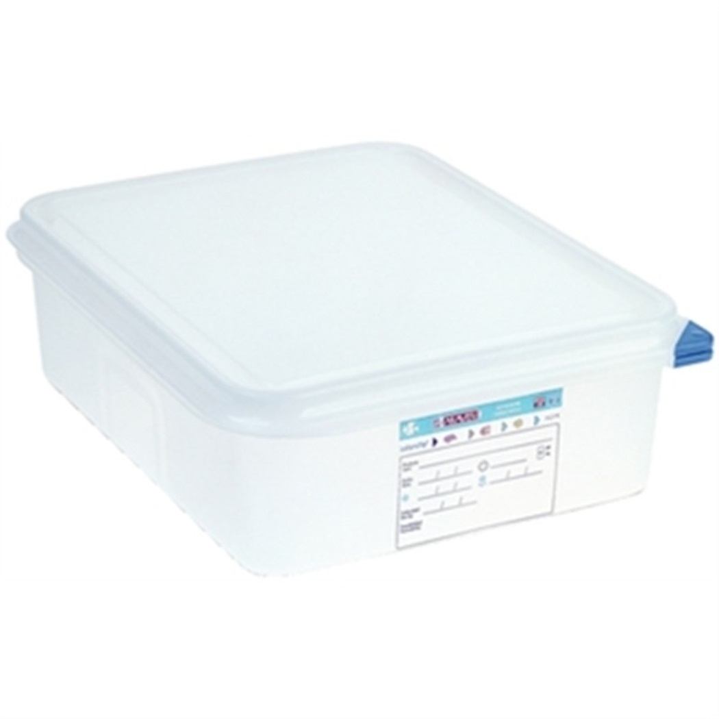 Contenedores herméticos gastronorm con tapa. Cada contenedor se suministra con un juego de clips de colores (rojo, amarillo, verde y azul) y una etiqueta borrable (utilizar con rotulador U283 o similar) para facilitar la identificación y la rotación de los alimentos. Rango de temperatura de -40°C a +95°C. Aptos para lavavajillas.