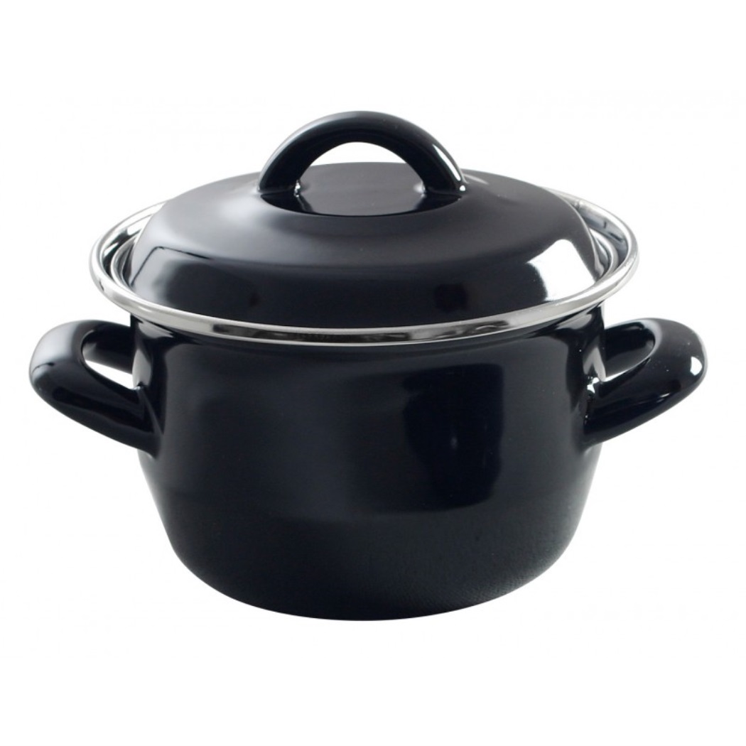 Cacerola para sopa y salsa - 12x (H)9 cm - 0,8 l - Negra - Esmaltada - 625705