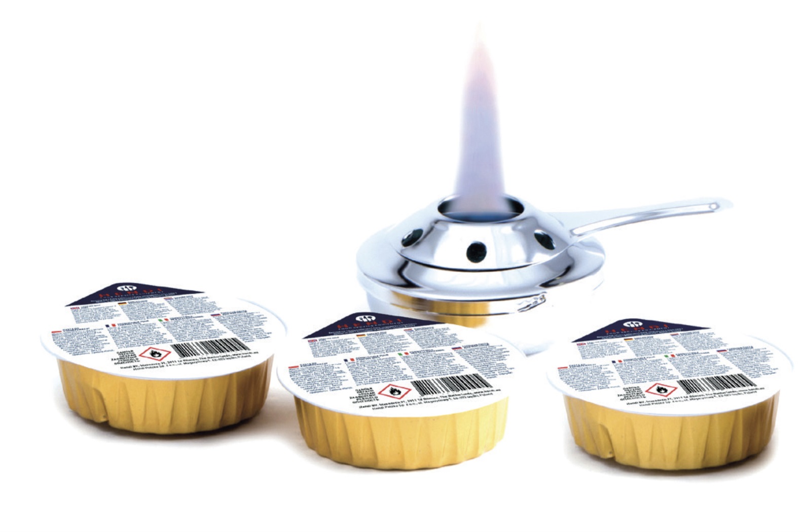 Pasta de fuego está hecha de alcohol de etanol natural (bio), mezclado con agua y un agente espesante. La pasta de fuego Hendi se hace artificialmente tan amarga que no se puede tragar. Para estar seguro y eficiente, por ejemplo. platos de rozamiento recomendamos encarecidamente utilizar soportes especiales de pasta de fuego. Hendi ofrece las variantes más comunes de pasta de fuego. Todos tienen la misma potencia de fuego, el grado de calentamiento está determinado por el tamaño de la abertura de la lata y la tapa del soporte de pasta de fuego. La marca de pasta de fuego Blaze se quema más corta y más intensa, por lo que la recomendamos para situaciones en las que se necesita una duración del fuego de 2 horas. La marca de pasta de fuego Hendi es más adecuada para el uso de 3 horas o más. Ambas marcas queman completamente libre de filo y sin olores. Los cartouches y latas rápidamente se vuelven muy calientes durante el uso, por lo tanto, siempre deben colocarse en un soporte de pasta de fuego - esto con el fin de prevenir el peligro de incendio (heridas)! Los porta pastas de fuego provienen de platos de rozaduras Hendi y también están disponibles por separado. Lea siempre las instrucciones del embalaje para su uso. Asegúrese de que no haya fuentes de fuego o calor en el área cuando trabaje con pasta de fuego. El gas inflamable de la pasta de fuego puede escapar fácilmente de la lata. No encienda la pasta de fuego hasta que las latas de los soportes de pasta de fuego estén en el lugar final. Asegúrese de que no entre agua (condensación) en la pasta de fuego. Esto puede causar salpicaduras peligrosas. El color de las llamas es principalmente azul. Cuidado: en condiciones de luz son prácticamente invisibles. Extinga la pasta de fuego sólo con la tapa del soporte de pasta de fuego. Recarga: Asegúrese siempre de que la lata y el soporte se hayan enfriado por completo. Retire siempre la lata del soporte para que no haya pasta de fuego que acabe directamente en el soporte. Retire las gotas directamente con un paño húmedo. Almacenamiento: Almacene siempre la pasta contra incendios en un envase cerrado en un espacio oscuro y bien ventilado que a 20 oC. Para el almacenamiento de cantidades mayores, consulte las leyes locales. Si se siguen las instrucciones anteriores, el riesgo de incendio es mínimo. En el caso de un fuego pequeño/iniciador: Utilice una manta de extinción (o una manta común grande y húmeda) para extinguir el fuego debido a la falta de oxígeno. En caso de incendio en la ropa o el cuerpo: Utilice una manta de extinción, un extintor de polvo o un extintor de CO2. Nunca intente apagar el fuego con un paño demasiado pequeño (mano), esto extendería el combustible y el fuego solo! Enfriar el cuerpo después de apagar al menos 15 minutos o hasta que llegue la atención médica. Deja la ropa puesta. Al menos siempre consulte con atención médica. Para gourmet, fondue, rechauds y caprichos de piedra. 80 gramos de bañera de aluminio. Duración de la quemadura: 2 horas. Para su uso con 111420.