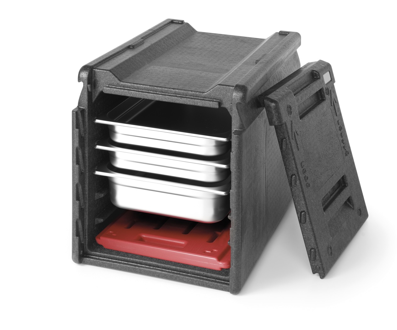 Contenedor ultraligero y duradero con apertura herméticamente pelable. Puerta extraíble - incluso mientras las cajas están apiladas. Equipado con 5 ranuras con 65 mm de espacio intermedio para portaobjetos contenedores, adecuado para contenedores GN1/1. Los bordes de apilamiento altos con perfil de bloqueo garantizan un apilamiento estable sin cambios. Se adapta exactamente a los palets Euro - cuatro cajas por capa. Polipropileno. Stackable.