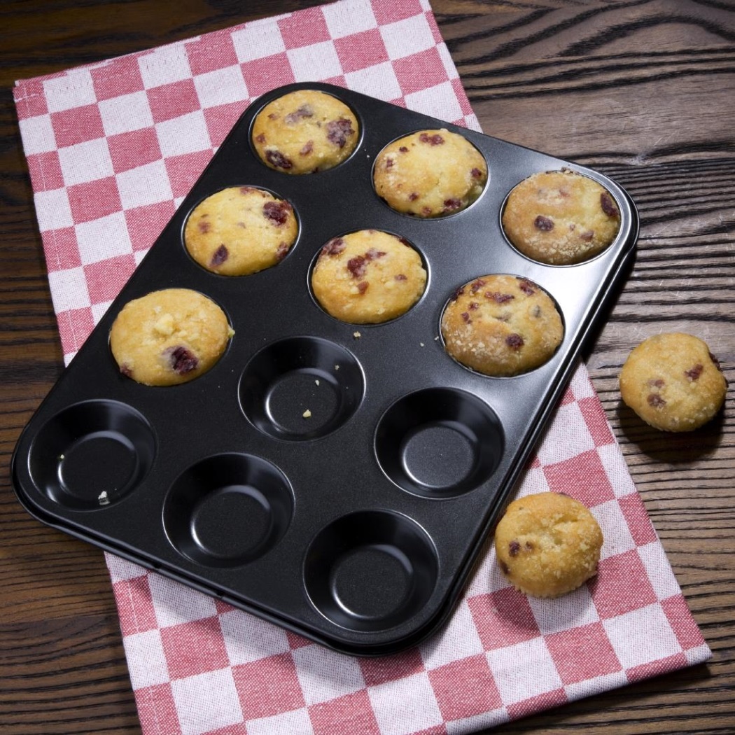 Bandeja minimagdalenas antiadherente, acero carbón revestido. 14mm profundidad