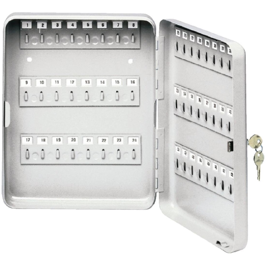 Armario de acero con cerradura y capacidad para 48 llaves. Listo para anclarlo a la pared con la tornillería suministrada.