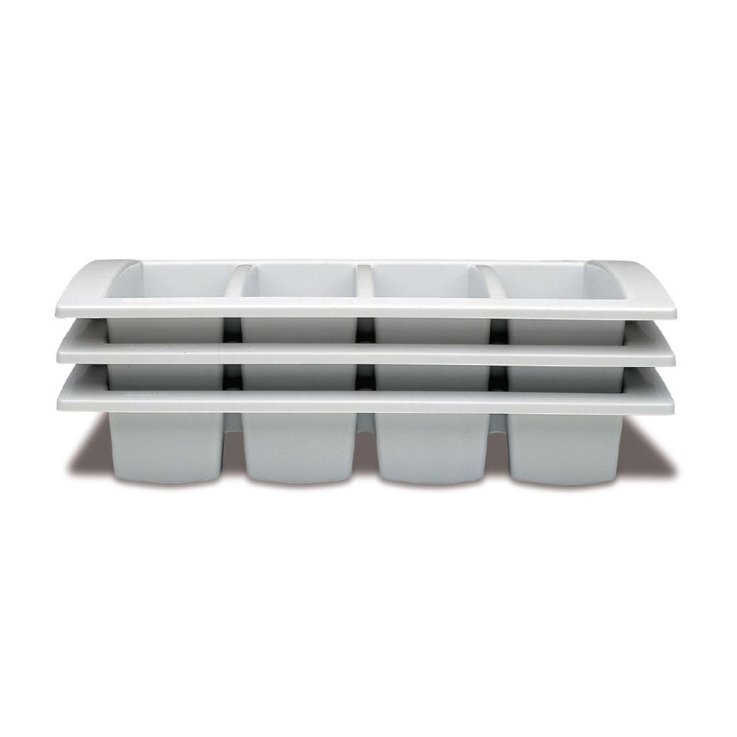 Bandeja de cubertería de tamaño 1/1 Gastronorm con acabado en un atractivo gris granito. Se apilan de forma limpia, ofreciendo un valioso ahorro de espacio.