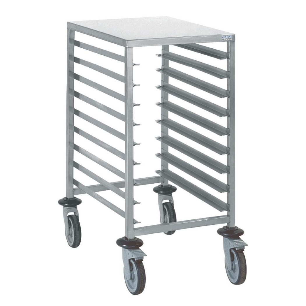 Fabricado en acero inoxidable soldado con 9 niveles para bandejas, cestas o contenedores de 600 x 400mm.