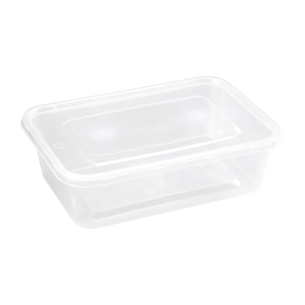 Contenedores con tapas aptos para microondas, perfectos para establecimientos "para llevar" y almacenaje. Aptos para congelador y reutilizables.