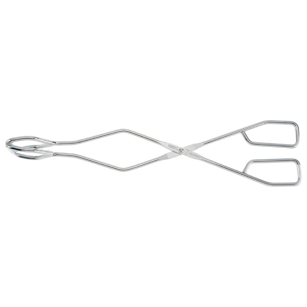 Pinzas de servir de acero inoxidable con extremo ondulado para agarrar los alimentos con seguridad.