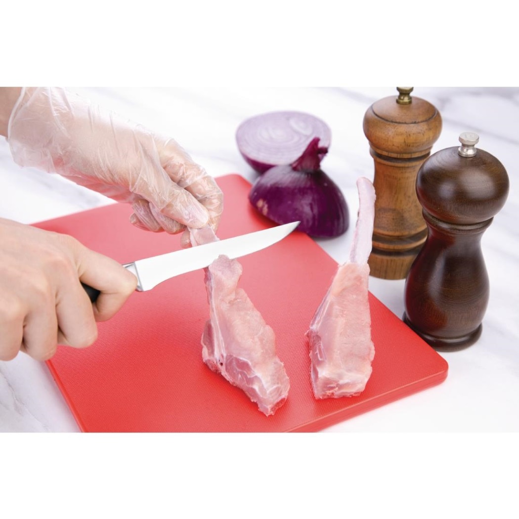 Cuchillos de filo fino con cuchillas de acero inoxidable con alto contenido en carbono para un corte duradero y de mayor calidad. El refuerzo ancho garantiza un equilibrio del cuchillo perfecto. Mango suave de diseño ergonómico. No aptos para lavavajillas.