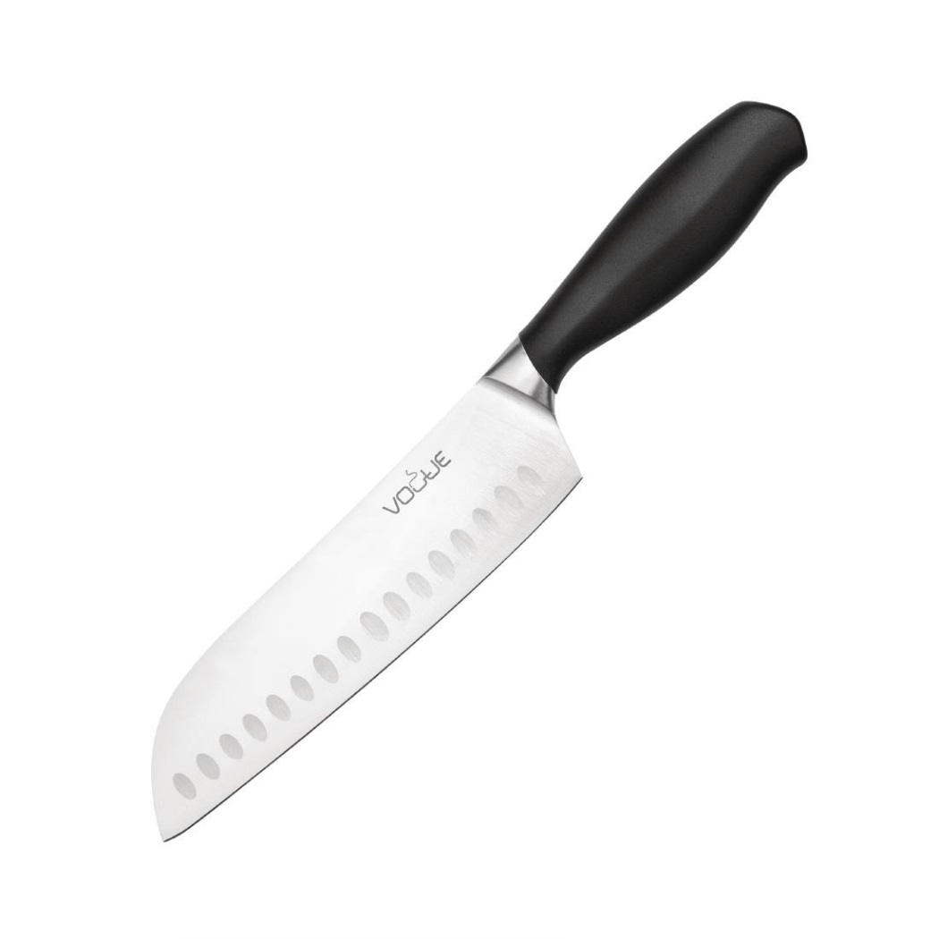 Cuchillos de filo fino con cuchillas de acero inoxidable con alto contenido en carbono para un corte duradero y de mayor calidad. El refuerzo ancho garantiza un equilibrio del cuchillo perfecto. Mango suave de diseño ergonómico. No aptos para lavavajillas.