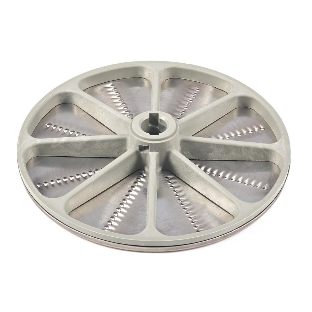 Amplia gama de discos cortadores compatibles para utilizar con la máquina Buffalo multifunción de preparación continua de verduras.