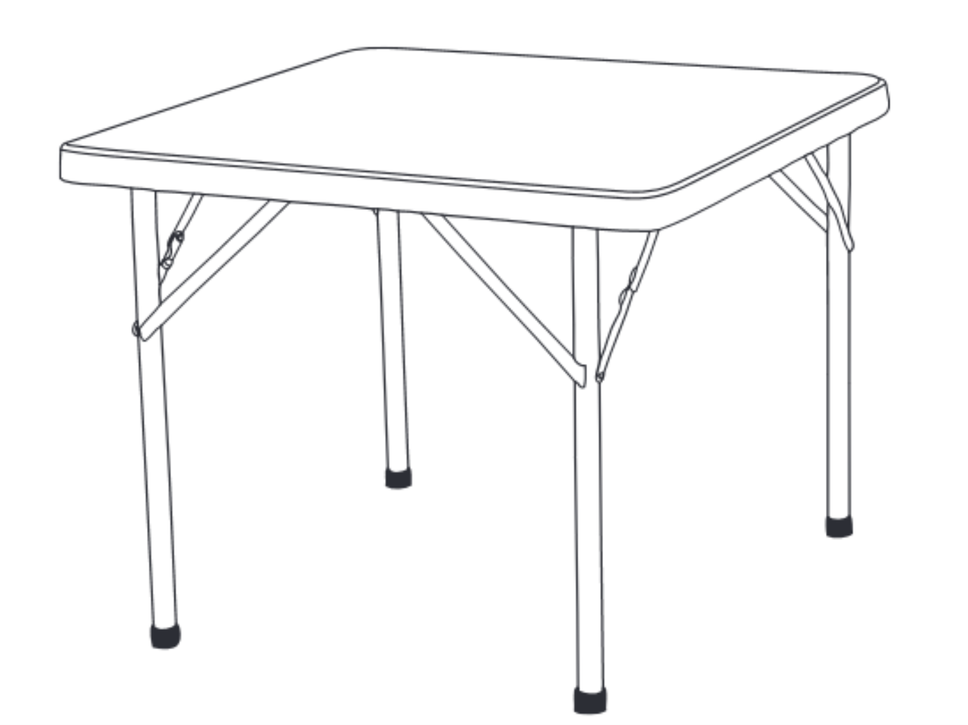 Mesa cuadrada plegable, tablero en polietileno de alta densidad, muy resistente y fácil mantenimiento