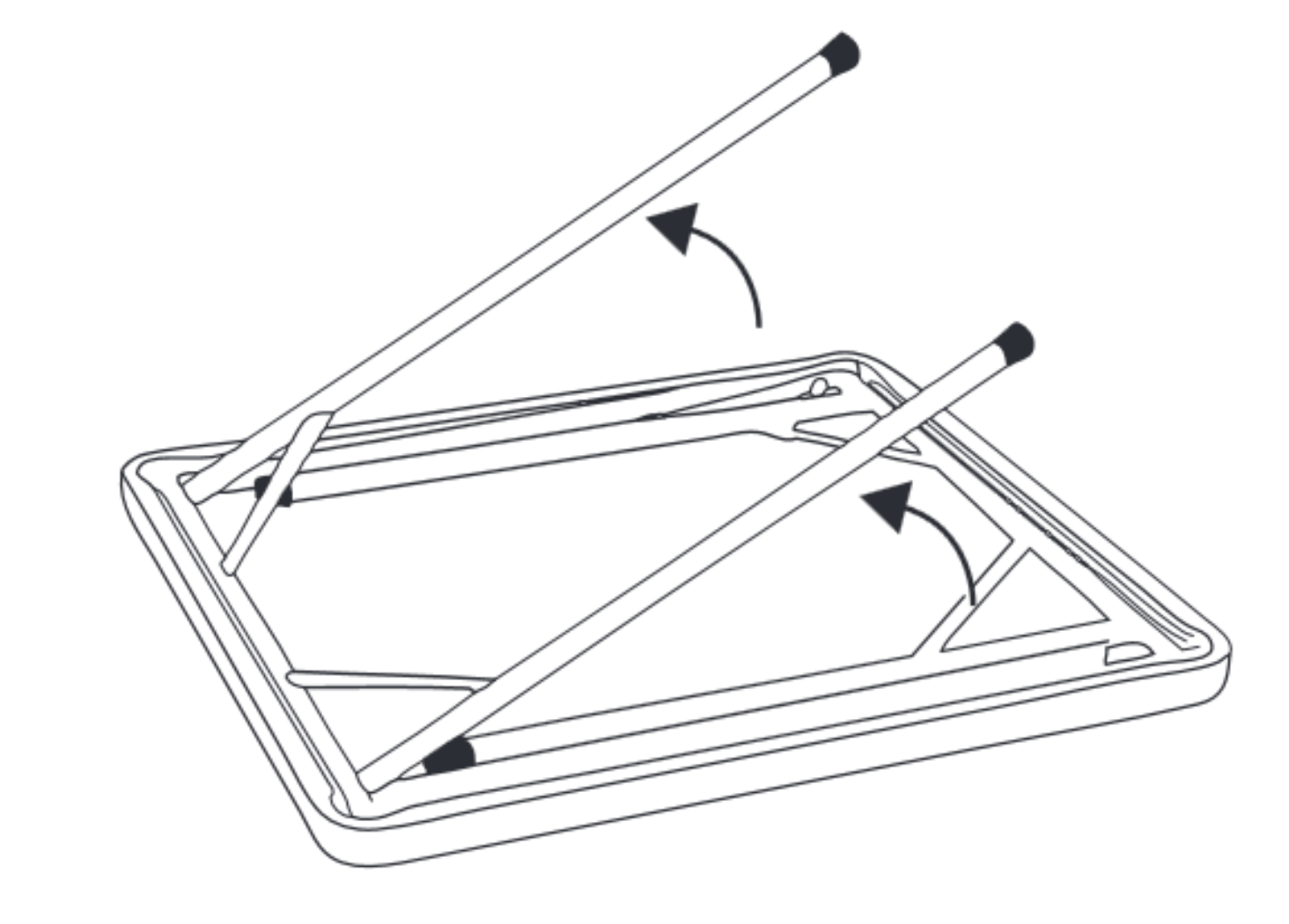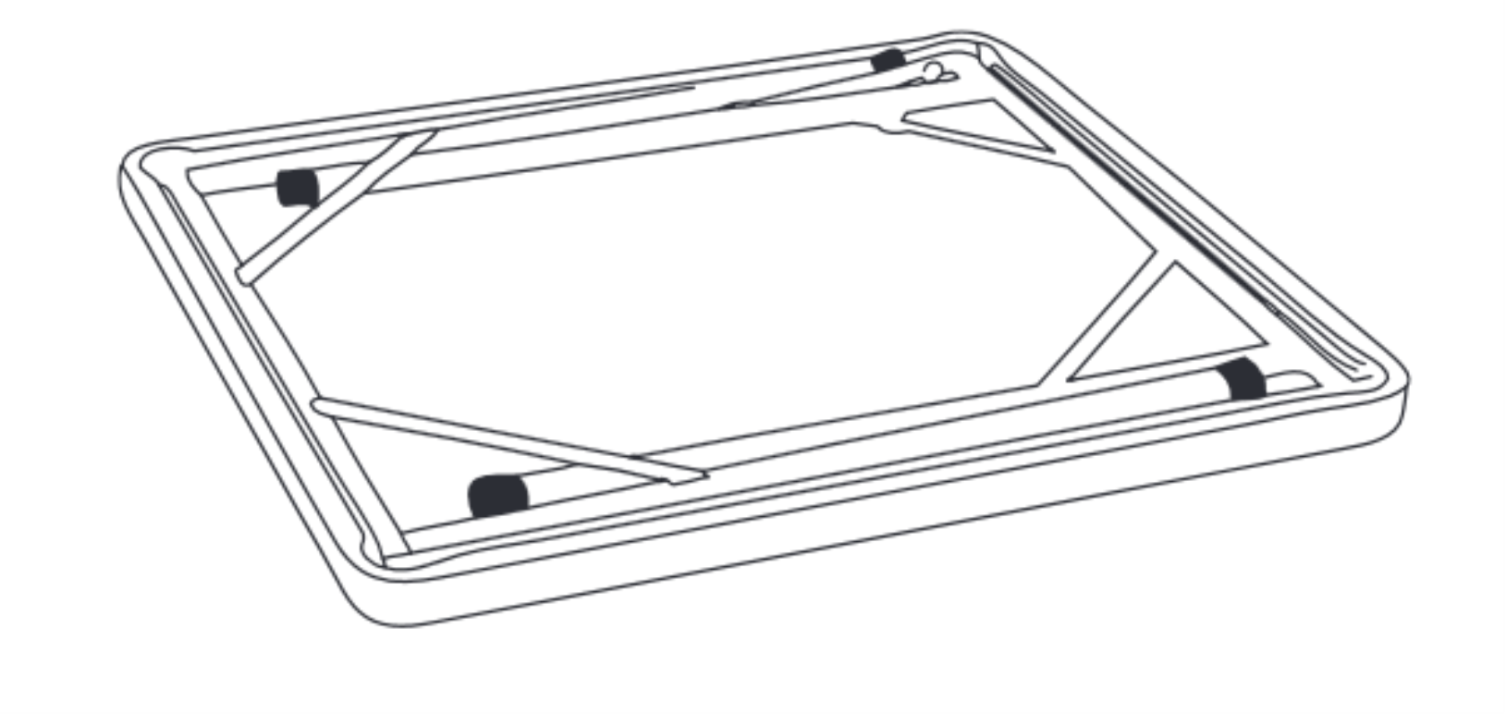 - Resistente chasis en acero y patas plegables bajo el tablero para un cómodo almacenaje
