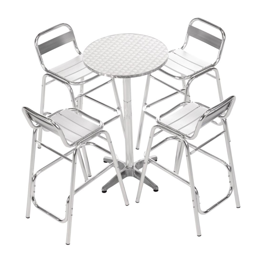 Mesas altas para usar con taburetes de bar o independientemente. Sólidas y estilosas con borde curvo. Ideales para bares, y restaurantes de comida rápida.