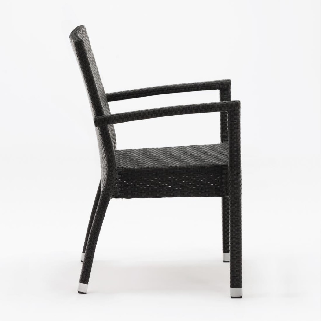 Sillones estilo ratán atractivos y de fácil mantenimiento, con respaldo alto para mayor comodidad. Resistentes a la intemperie, por lo que son perfectos para terrazas y cualquier establecimiento al aire libre.