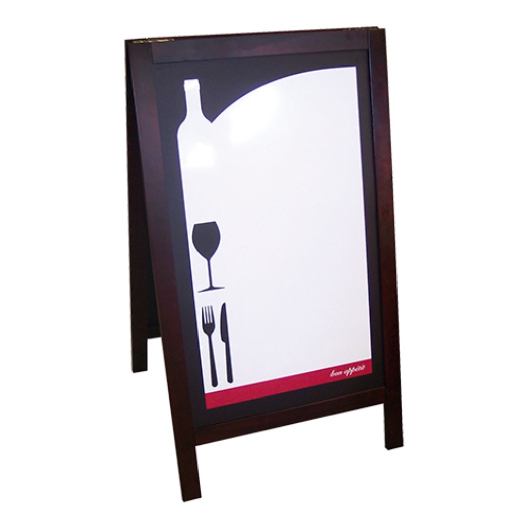 Tablero de acera con marco de madera, modelo 'Couverts', 65x(h) 115 cm
