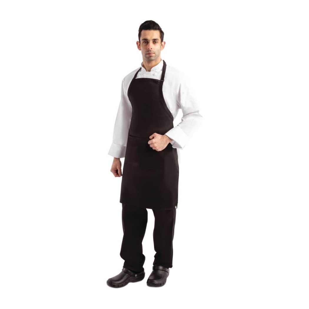 Delantales de poli-algodón con tira de cuello regulable, para un ajuste perfecto. Peto reforzado. Apto para uso interno o de cara a cliente.