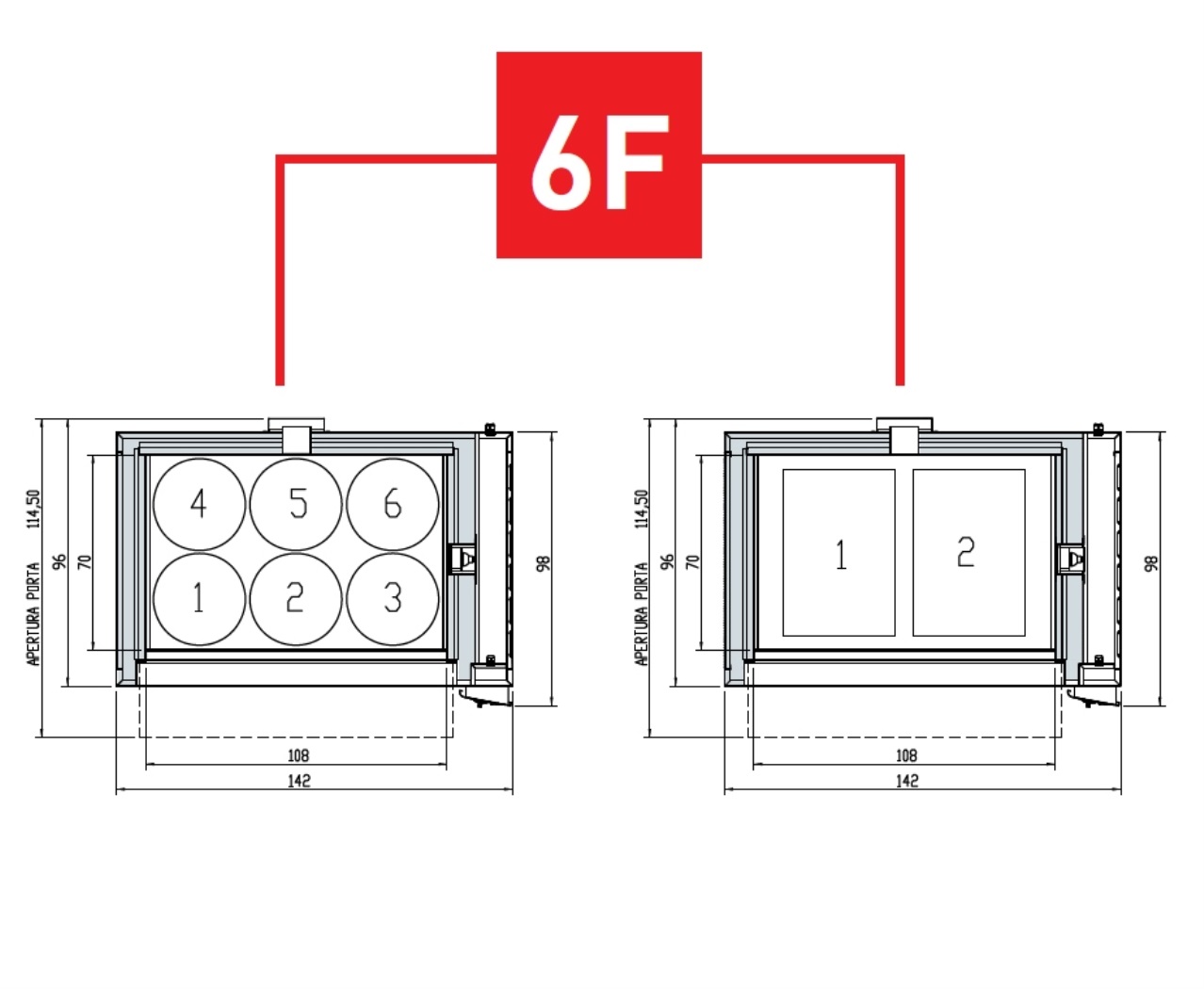 Adecuado para 6 pizzas de 33 cm (2x3 lado a lado)