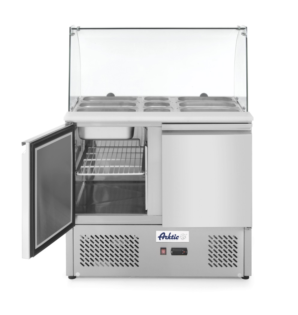 El interior y el exterior están hechos de acero inoxidable de alta calidad. Puertas equipadas con asas cómodas. Refrigeración por aire forzada con descongelación automática, compresor colocado debajo de la sala de refrigeración. Aislamiento de espuma de poliuretano de 35 mm de espesor. Con bastidores ajustables, adecuado para la cocción GN 1/1. Pantalla digital y termostato electrónico. Con 4 pies antideslizantes de plástico ajustables. Clase climática: SN-T. Refrigerante: R600a. Todos los modelos se entregan sin bandejas GN. Con elegantes tamaños de pantalla de cristal: 830x595x (H)500 mm. Incluyendo 2 estantes (335x570 mm). Capacidad máxima 15 kg cada una (con distribución uniforme del peso). Hoja de trabajo plástica: 900x135x (H)20 mm. Peso: 80 kg. Función de refrigeración. Nuevo. Acero inoxidable.