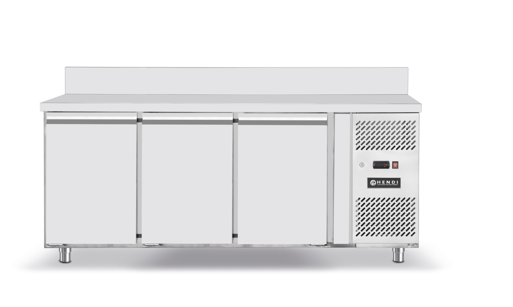 interior y exterior de acero inoxidable, excepto la placa de cubierta trasera exterior de acero galvanizado. Incluye 3 estantes ajustables 575x335 mm. Refrigeración forzada. Compresor EMBRACO. Sala de refrigeración de tres puertas, adecuada para Gastronorm 1/1. Pantalla digital. Seguro de usar a temperaturas ambiente de hasta 43oC. Rango de temperatura: -2/+8oC. Refrigerante: R134a. Función de refrigeración. Acero inoxidable.