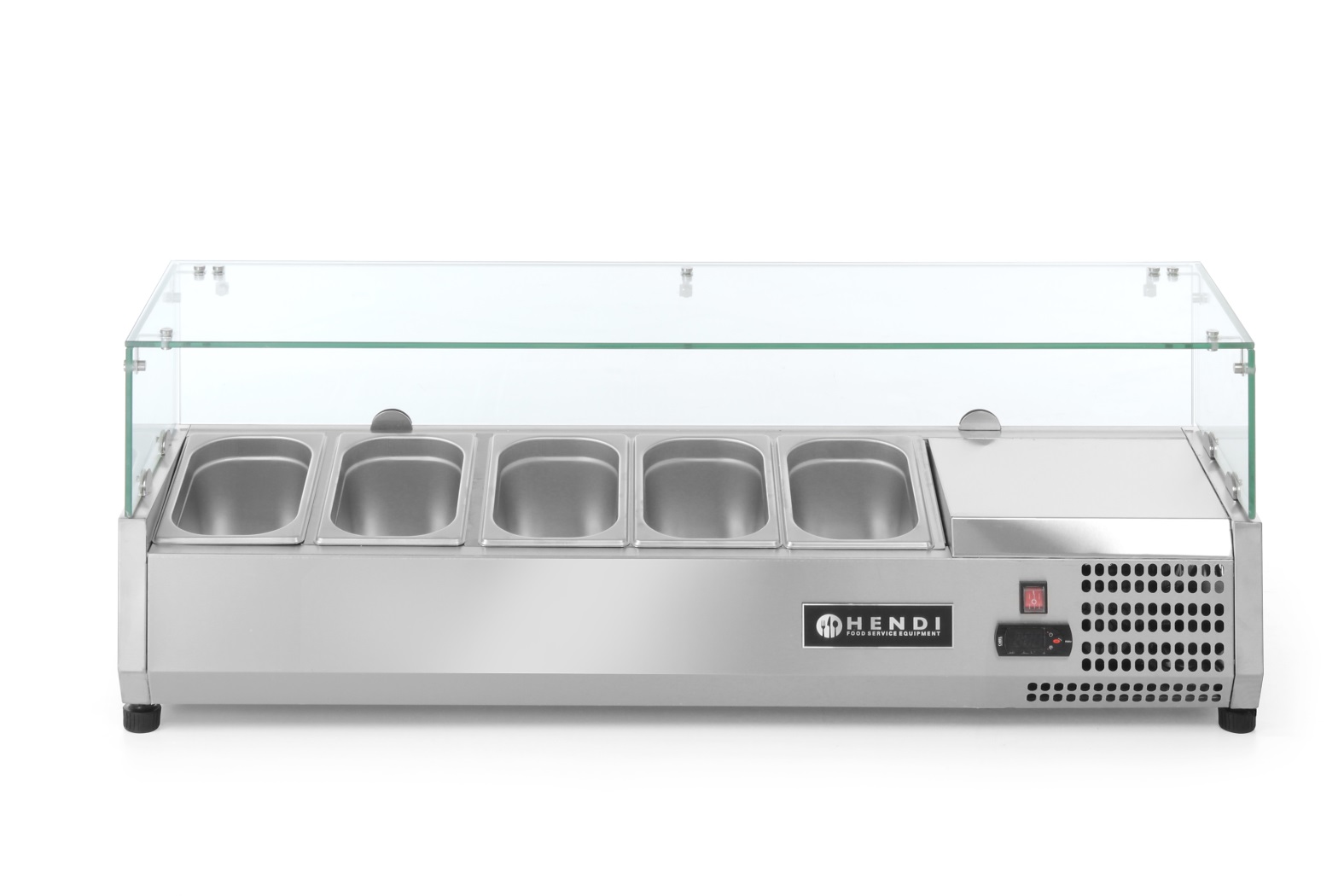 br />Dentro y fuera de acero inoxidable. Visualización de vidrio templado. Refrigeración estática - baño de agua fría. Aislamiento C5H10, 40 mm de espesor. Pantalla digital y termostato electrónico. Rango de temperatura: de +2 a +8 oC. Compresor EMBRACO. Compresor: EMT45HLR con 1/5 hp de potencia. Sala de refrigeración adecuada para Gastronorm 2/1. Función de descongelación automática. Refrigerante R134a (140 g). Clase climática: N. Seguro de usar en temperaturas ambiente de hasta 32oC con humedad relativa de hasta el 60%. 4 Patas de plástico ajustables. Pantalla de refrigeración para pizarras de horneado GN 1/4 de hasta 150 mm de profundidad. Los contenedores de gastronorm no están incluidos. Acero inoxidable.